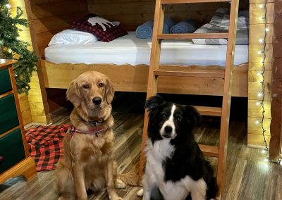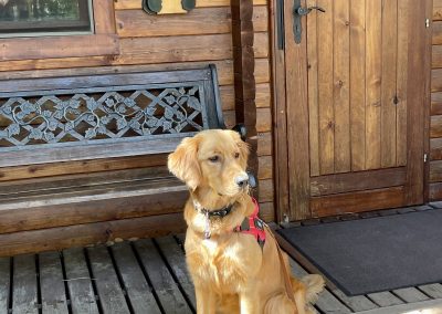 Today I had a milestone birthday and celebrated it with DeeAnn, Rainie and Holly in Hayward, Wisconsin.   Our cabin was an adorable cozy cabin sitting near the edge of a river.  We settled into the cabin quickly and kept cool in the air conditioned unit.  Holly was in her heaven with all the pine cones and sticks but her interest faded with the saturation.  She amazed me with her relative calmess around and within the cabin.  She treated respectfully and as if it was a large dog house.