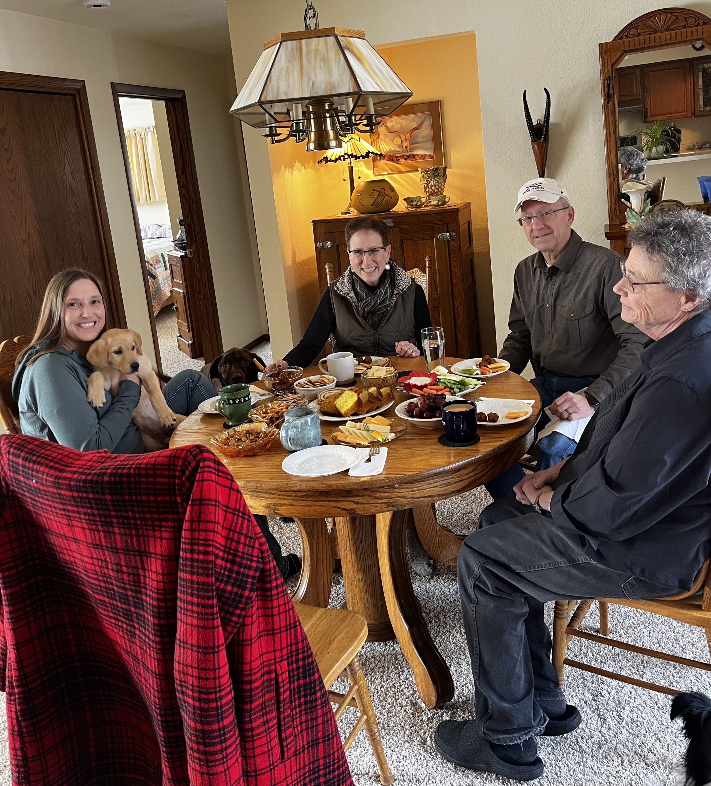 The Super Bowl generally has a lot of hype to it but this year it took a back seat to everything else happening. Lanny & Mary came to town for a home tour of the Harvey House and an initial introduction to puppy Kimber Blu Brown! With that simply said and it being a one night stay, one would think there would not be too much to write about. Instead, I am wondering how do I even start to summarize all the events, stories, laughs, surprizes – which doesn’t even include all that happened with the dogs (and cat).