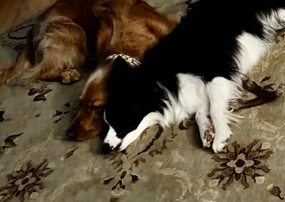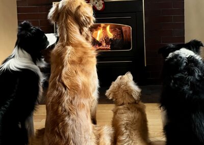 We are not sure how this can be but more and more of our friends are turning 70 years old.  The latest is Audrey.  Audrey lives in Oregon but was in town for her special day.  Conveniently, November 22 was a Friday night and a perfect night to celebrate Audrey’s milestone birthday at the house with DeeAnn, Tim and myself.   I successfully introduced Holly to the party slowly and when well supervised.  It was not long and Holly was bored with a bunch of people sitting around a table sharing appetizers, drinks and conversation.  She, as well as Keltie, Rainie and Helen, settled in and took one-eyed naps while we celebrated in our own way.  Eventually Audrey made her way to being eye-level with the dogs on the floor opening the door for circling, pawing and licking.  Audrey, a gifted artist and creative soul is blessed with immense insights into souls of any nature.  After a short period of time with Holly, she shared with me that Holly is telling her that she loves her backyard and laying on the top of the stairwell (both true).  Audrey also said Holly’s ambition is to be the best dog I’ve ever had.  Now that is a tall order following Bailee and Boden plus I am not one to do rank comparisons when it comes to relationships but it is safe to say that Holly is on her way to being the best big dog I’ve ever had in my senior life!   And how sweet it is that this is her aspiration!   Maybe turning 3 years old is more impactful than I realized!   Audrey also invited Helen into a conversation and was told, “I like being pampered.  I was pampered all my life before.  And I want to keep being pampered.’   Now how can anyone dispute the accuracy with that?   Gracie was a bit more challenging but Audrey heard from Gracie that she loved me, and only me.   Again, spot on.