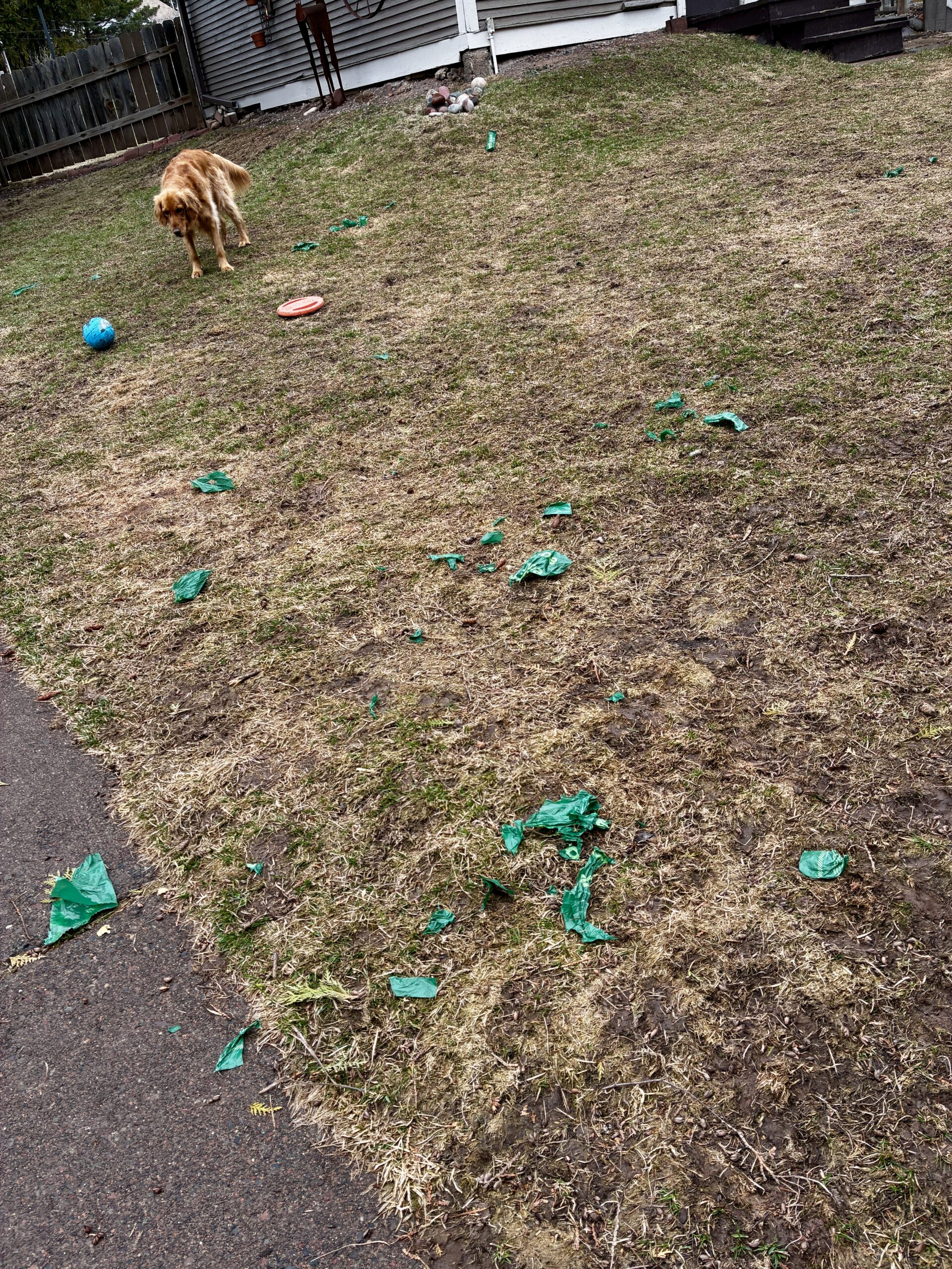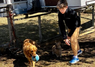 Easter week-end brought out neighbors and neighbors grandchildren. I had Keltie and Rainie also. As is often the case, a yard filled with dogs serves as a kid-magnet. Donna’s grandsons, Dane and Cole, came into the yard to play with the dogs which of course had Holly jumping over the moon. Literally. Once settled down, Dane and her played fetch intermixed with chase. Cole & Dane played a game of keep away with Holly, tossing the frisbee to and from each other. Holly’s speed would thwart the game especially during any poor throws or dropped tosses. Then the game became chase, Holly’s head held high with a smile taking over her face while she held the frisbee. Heartley stopped by as well, once again migrating to Helen. Those two sat safely tucked away on the adirondack chair. Later that afternoon, Ivy came running over to the fenceline. They had just returned from church so she was wearing her new Easter outfit with a darling white dress coat keeping her warm. Seeing her put a surge of adrenaline into all the dogs. Their barking and jumping on the fence were both out of control. Once calmness finally began settling in, I noticed Ivy had a muddy pawprint on the bottom left corner of her beautiful white coat. I saw her looking back towards their house and I knew she was concerned on how to explain the mud on her white coat. I was concerned too. I offered her a damp rag which she quickly accepted, always standing with her back to their house. She worked on her coat for about 10 minutes, even using a Tide cleaning pen on it. She was finally satisfied with how it looked and stated her plan – ‘I’ll just keep my hand over it’. I felt bad that the dogs had caused her such stress. I wondered if I should go explain the crime to her parents, yet a part of me also wanted to help pull off the cover-up she had going. I told her if her mother says something to have her call me, her grandma has my number. I didn’t hear anything more about it. Today, all of them (John, Donna, & Diane) walked over to the fenceline to throw the ball for Holly and chat with me. I confessed about my aiding and abetting a crime of covering up muddy pawprints from a darling white Easter coat. They laughed, not knowing anything about it. I filled with pride inside thinking that Ivy may have pulled it off! Both Donna & Diane were elementary teachers, both have awards and high honors for their outstanding and dedicated work. Diane made comment – ‘it’s the kids that don’t get dirty that I get concerned about.’ I hope Ivy had the same sort of relief as I did. I apologized again and said it is probably the parents I should be talking with not grandparents, which brought a flinging motion with her hand and the comment ‘Don’t worry. We’ll take care of them.’ Now I know why all their grandkids absolutely love coming to their house to visit! And why I adore them as neighbors. That said, this spring has proven it is time to again attempt a training plan with Holly discouraging her from jumping on people, fences or doors. After all, she is three years old.