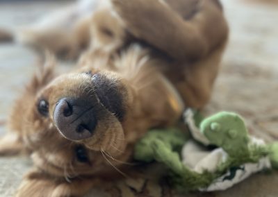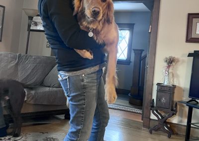Lana has a fun game where she picks up the dog, holding them securely and swaying back and forth singing Baby [Dog Name]. Kooper looks so relaxed, almost bored as in ‘here we go again’! Holly is wide-eyed with a silly grin and a wagging tail. The funny part comes after Holly is put back down on the floor. If Lana approaches her with intent to pick her up again, Holly literally drops to the floor and makes like a sack of potatoes. It’s the goofiest thing to see.