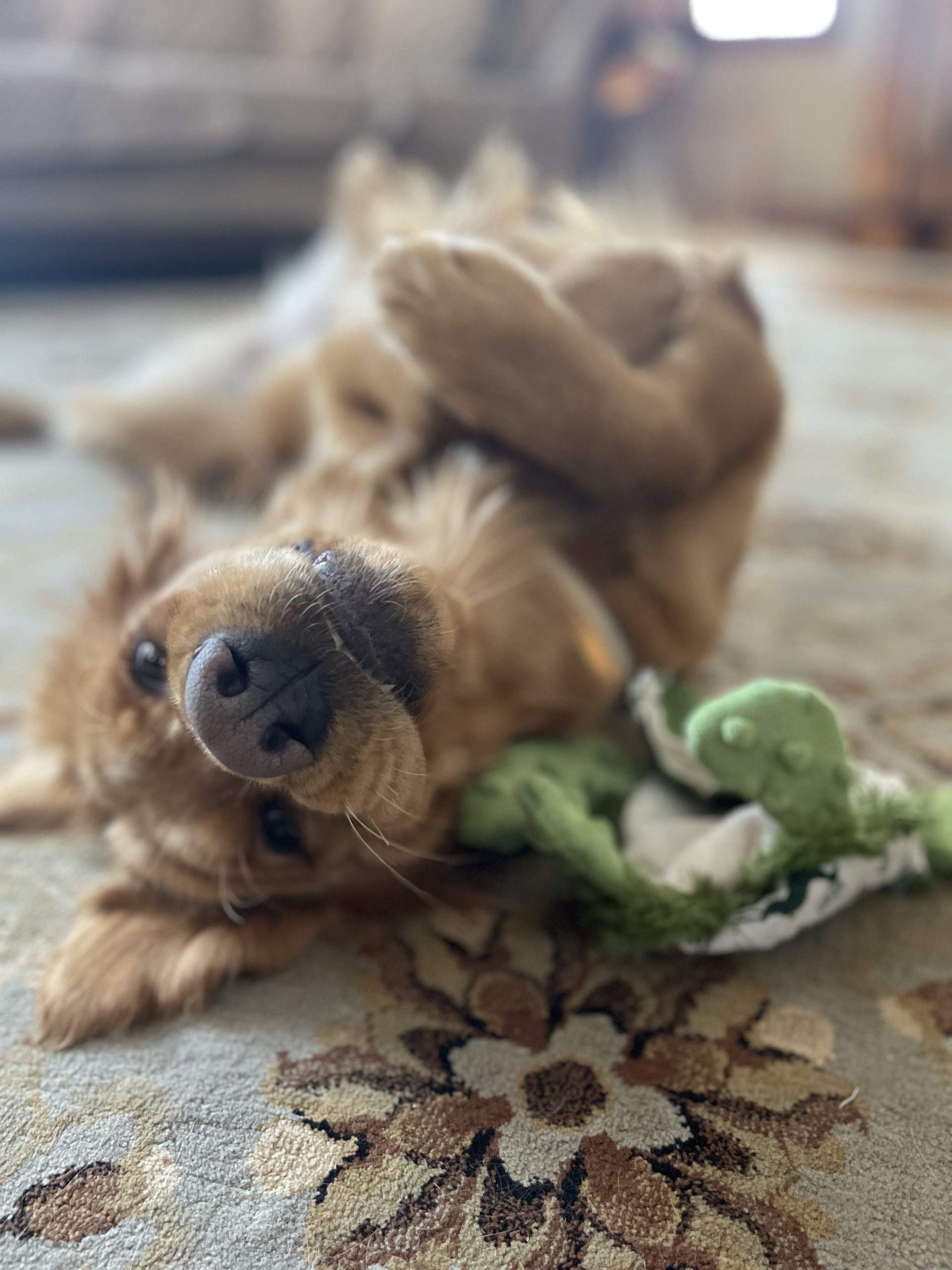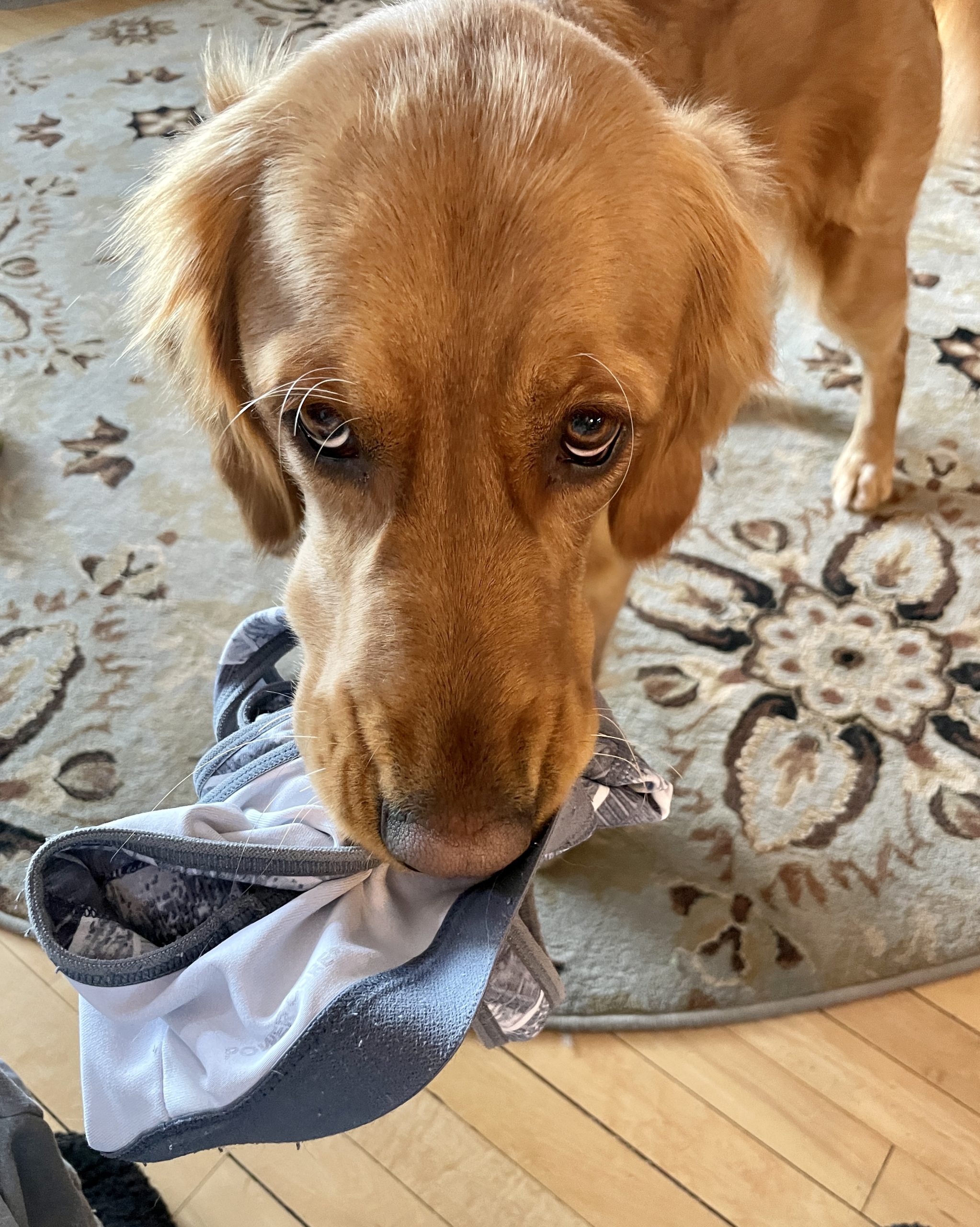 Lana has a fun game where she picks up the dog, holding them securely and swaying back and forth singing Baby [Dog Name]. Kooper looks so relaxed, almost bored as in ‘here we go again’! Holly is wide-eyed with a silly grin and a wagging tail. The funny part comes after Holly is put back down on the floor. If Lana approaches her with intent to pick her up again, Holly literally drops to the floor and makes like a sack of potatoes. It’s the goofiest thing to see.