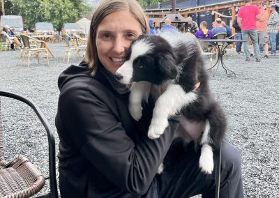 It’s been a busy weekend celebrating DeeAnn’s birthday – little Keltie’s first birthday party and first sleepover with Holly.  At one point, I harbored concern about Holly’s ability to be gentle with a little 10-12 pound puppy.  Seems I am often telling her to be gentle, settle down, “no chase” and “easy” with Rainie and Gracie.  When she is with Keltie there is far less of those phrases and much more praise and “good girl” wishes.  It has been heartwarming to watch how Holly has embraced Keltie and plays (and plays and plays) with her as if she is with a littermate just 9 months ago.  They never seem to tire but periodically we see short power naps from both of them.  DeeAnn and I watched a movie in the evening and had to enforce a ‘no play’ period so we could watch with less chaos in the room.  Much like Kooper allowed Holly to take toys from his mouth, Holly allows Keltie to take toys from her mouth. Keltie takes running leaps to land on Holly’s head and they twist and turn until both get upright again.  Occasionally we here their teeth clicking together as they mouth wrestle, Holly trying to avoid getting nipped by the laser sharp puppy teeth.  It’s nonstop loving puppies doing puppy play.