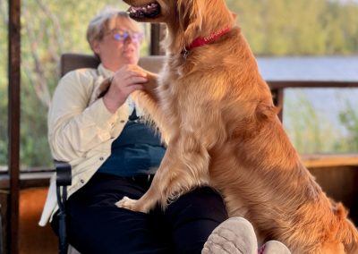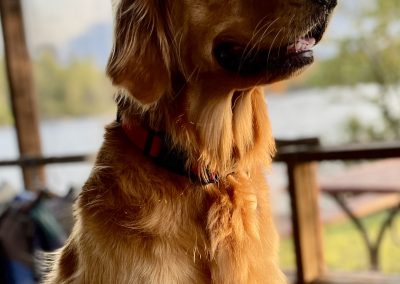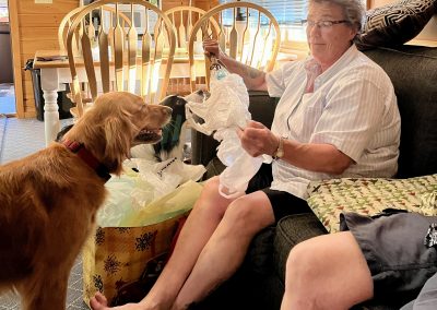 Holly was in her heaven while in Ely.  Lakes and large open grass fields all in one setting had her floating on air.  After all the outdoor fun, she was a tired, content girl inside.  I enjoyed watching her socialize with everyone.  She made the rounds and managed to convince each person that she was in need of a neck/chest rub and worthy of being told she was a good girl, maybe even deserving of a treat or two.  I called it schmoozing!  She does it well.