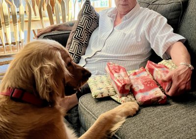 We still miss our Tessie, the sting coming out when we are together in Ely.  Her absence, but Helen’s presence, is a stark reminder of her loss.  Like last year, her sister, Susie, and Tessie’s two nieces, Josie & Katie, joined us for a night of reminiscing, laughter, and food/drinks.  This gathering is healing for all of us.  I know I watch Susie’s gestures and expressions and hear her voice inflictions and phrases – and I see and hear Tessie.  We all do, and tell her so.  She comments about her comfort level with us and feels as if she has known us for a long time.   Helen goes ballistic when she greets Susie and the girls.  It’s apparent she remembers them and their role in her past life.  Tessie may not be attending our tradition, but our tradition is still including her.  And her inclusion and is building more relationships grounded with laughter, food and memories about her.