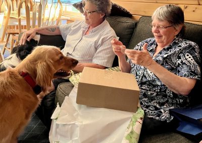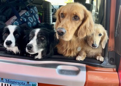 The Sven Saw Sisters annual Ely trip is in the books!  We calculate this is year 34ish for us taking time from our lives and collectively gathering in Ely for 4 days of fun, food and friendship – friendship that is best defined as family now.  And the family includes the dogs.  Every one of the dogs, Helen included, has attended the Ely trip every single year of their life.   Rainie -11, Helen – 11, Holly – 3 and Keltie – 2.   When we arrive at the resort the dogs know the lay out of the land.  They know which cabin, they know which dock, they know which bedroom they belong in.   The Sven Saw Sisters are proud of our tradition and find comfort in our routines, still enjoying the new experiences and memories that occur each year.  Our dogs seem to do the same.  They stay nearby the cabin, they accept their time drying off in the porch, they swim next to our designated dock – they show us they can be trusted.   Except Helen – I keep her on a long lead so she cannot run down the hill and jump in the lake!