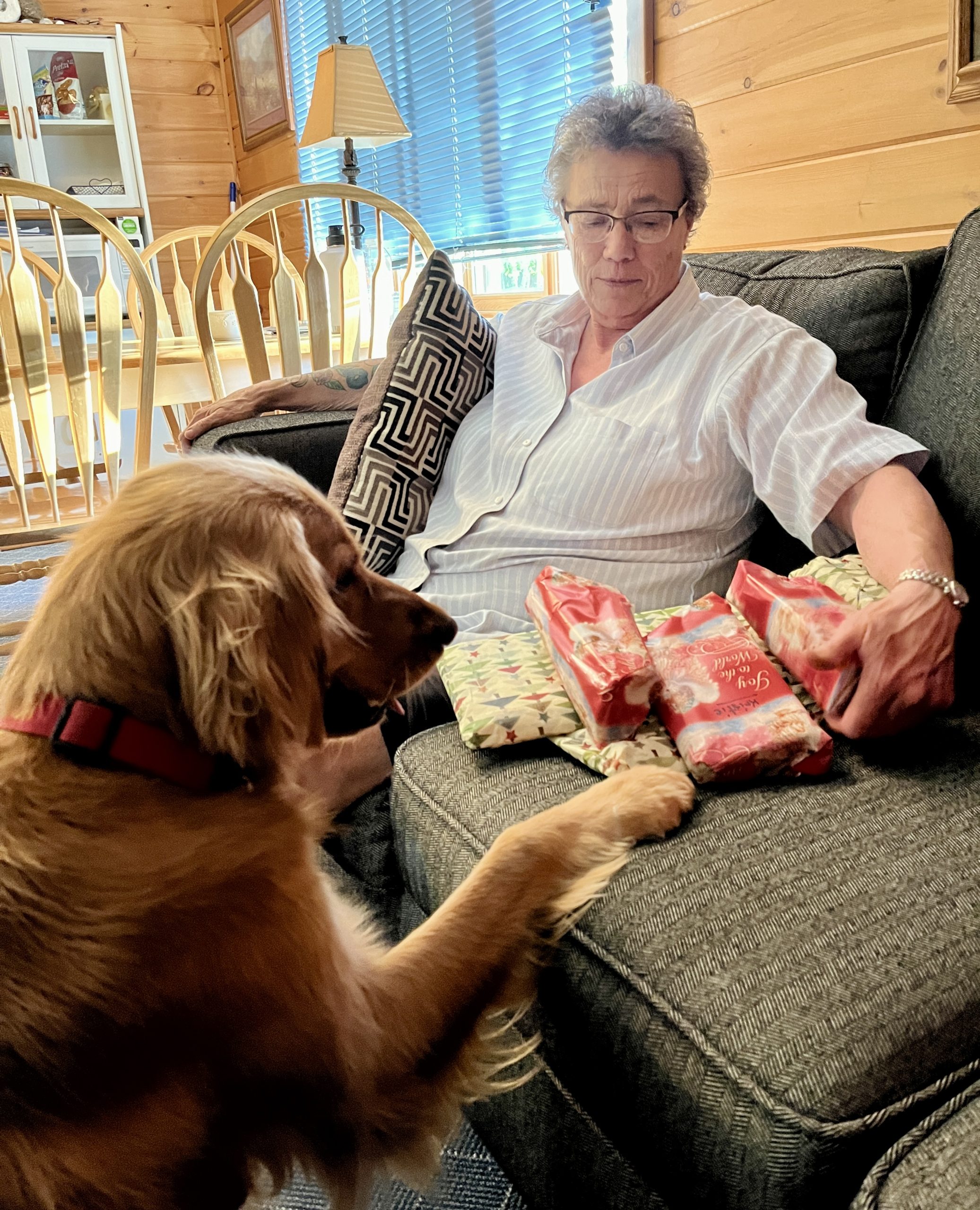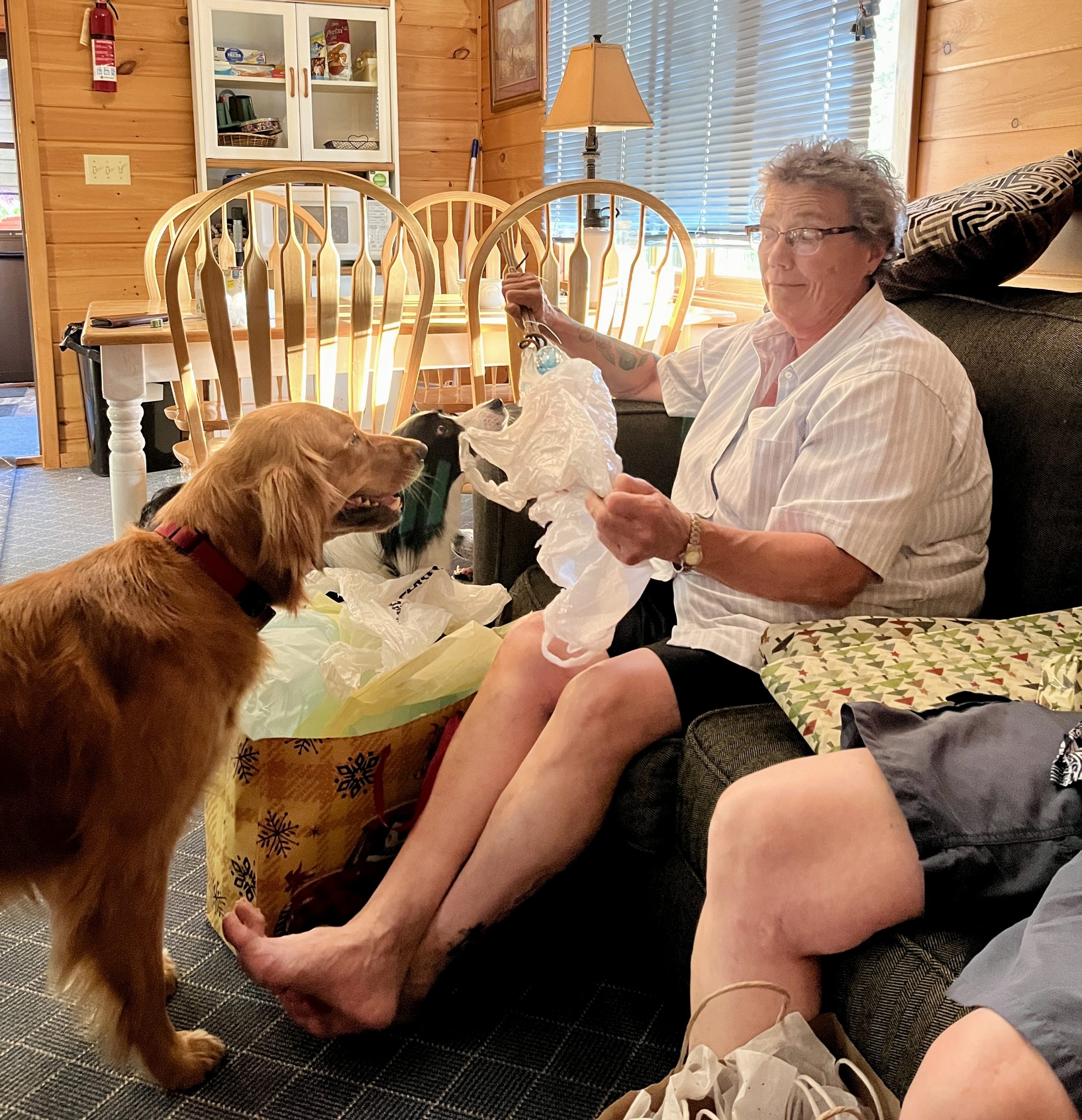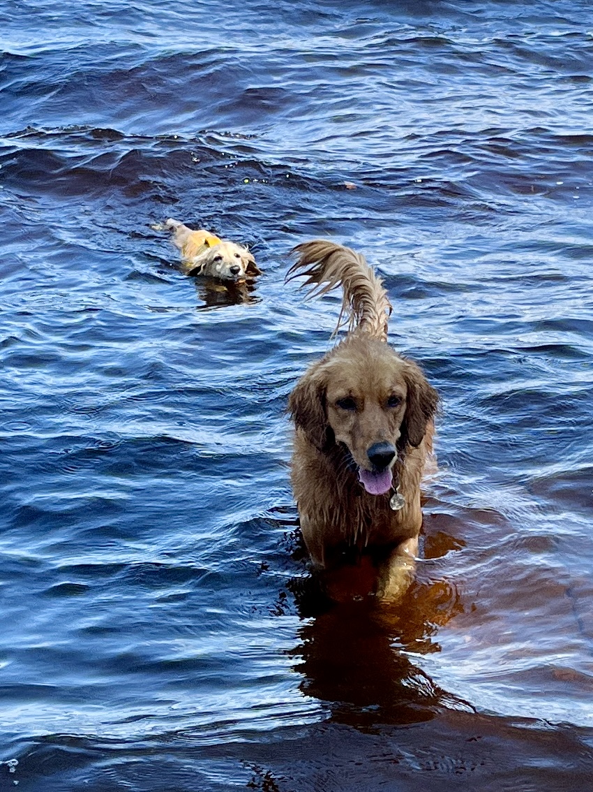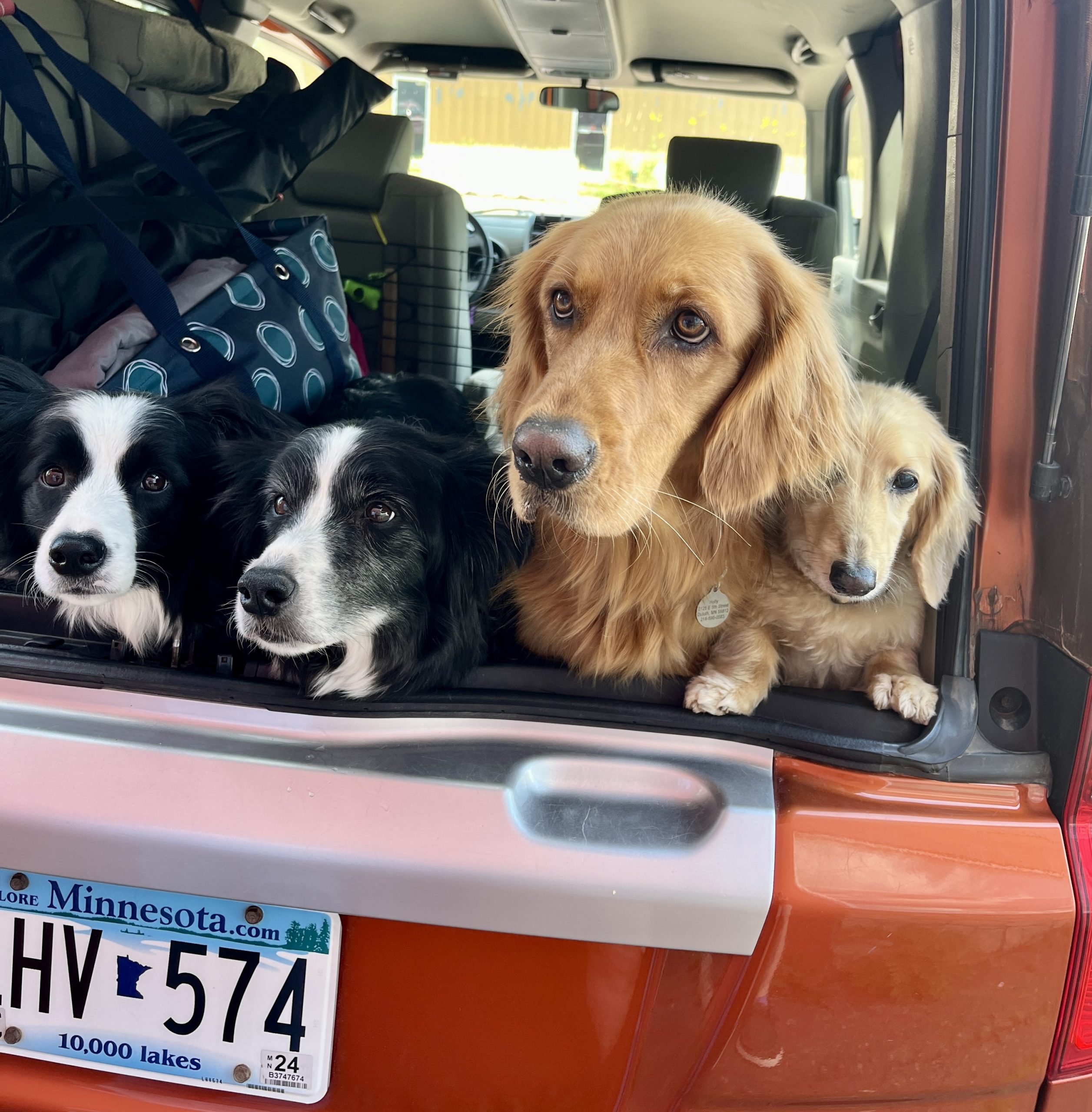 The Sven Saw Sisters annual Ely trip is in the books!  We calculate this is year 34ish for us taking time from our lives and collectively gathering in Ely for 4 days of fun, food and friendship – friendship that is best defined as family now.  And the family includes the dogs.  Every one of the dogs, Helen included, has attended the Ely trip every single year of their life.   Rainie -11, Helen – 11, Holly – 3 and Keltie – 2.   When we arrive at the resort the dogs know the lay out of the land.  They know which cabin, they know which dock, they know which bedroom they belong in.   The Sven Saw Sisters are proud of our tradition and find comfort in our routines, still enjoying the new experiences and memories that occur each year.  Our dogs seem to do the same.  They stay nearby the cabin, they accept their time drying off in the porch, they swim next to our designated dock – they show us they can be trusted.   Except Helen – I keep her on a long lead so she cannot run down the hill and jump in the lake!