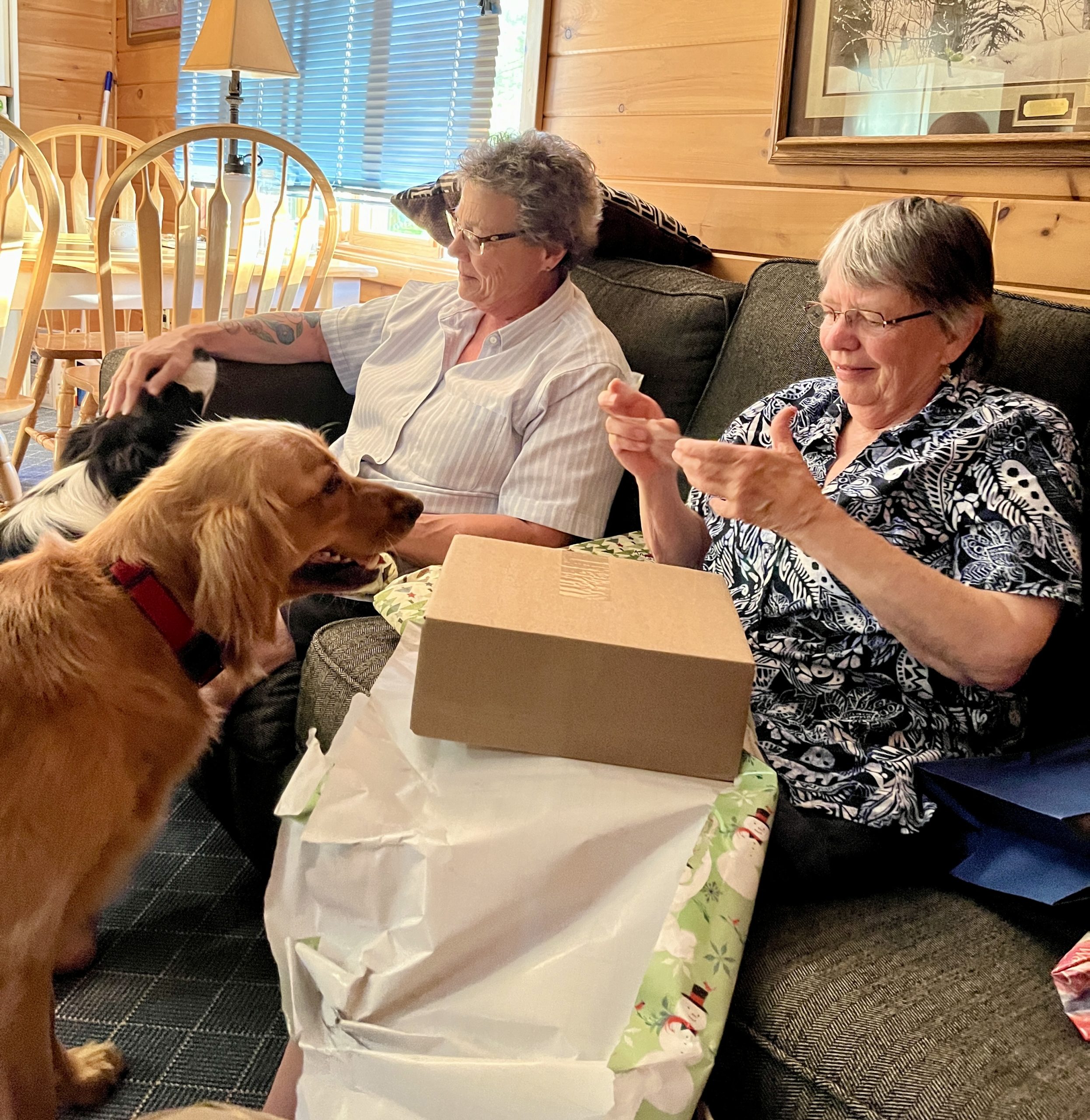 We still miss our Tessie, the sting coming out when we are together in Ely.  Her absence, but Helen’s presence, is a stark reminder of her loss.  Like last year, her sister, Susie, and Tessie’s two nieces, Josie & Katie, joined us for a night of reminiscing, laughter, and food/drinks.  This gathering is healing for all of us.  I know I watch Susie’s gestures and expressions and hear her voice inflictions and phrases – and I see and hear Tessie.  We all do, and tell her so.  She comments about her comfort level with us and feels as if she has known us for a long time.   Helen goes ballistic when she greets Susie and the girls.  It’s apparent she remembers them and their role in her past life.  Tessie may not be attending our tradition, but our tradition is still including her.  And her inclusion and is building more relationships grounded with laughter, food and memories about her.