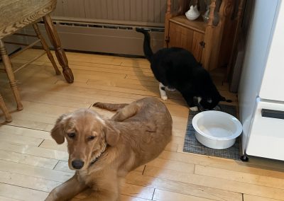 At home, there has been some progress. There are moments when Holly & Gracie are side by side in a calm state. Generally these happen when Holly is near exhaustion and/or when Gracie is fixated on her food dish. Everything starts somewhere.