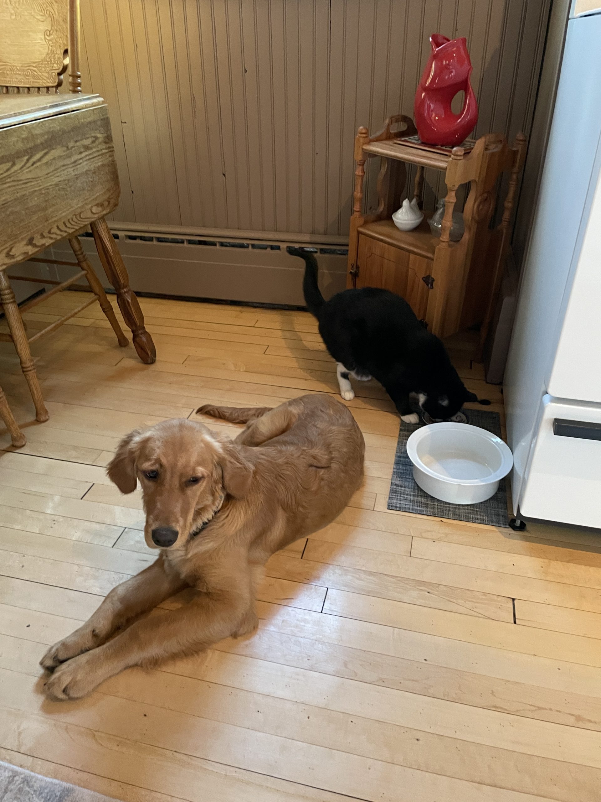 At home, there has been some progress. There are moments when Holly & Gracie are side by side in a calm state. Generally these happen when Holly is near exhaustion and/or when Gracie is fixated on her food dish. Everything starts somewhere.