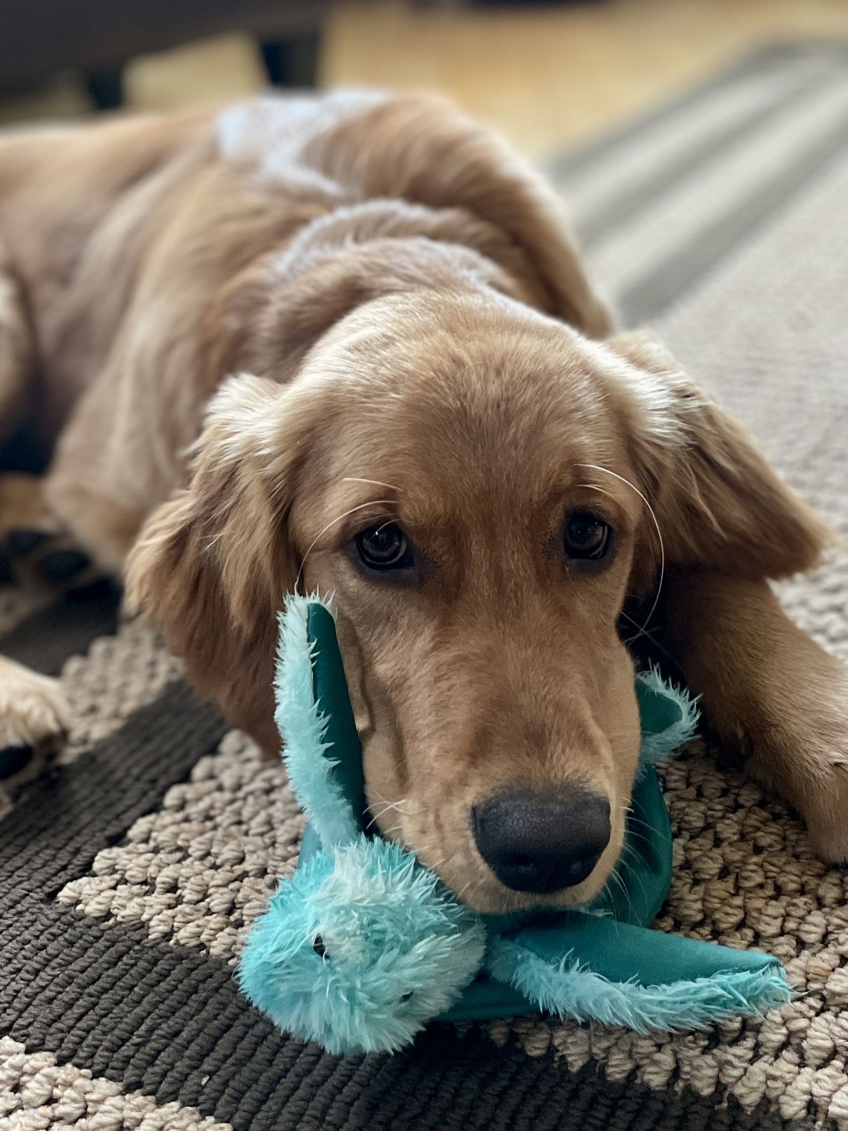 The sun came out yesteday. Today the temperatures reached 70 degrees. And just like that – there is green grass! Sunshine and grass has helped Holly forget all about the snowbanks she loves so much. She has a new love now.