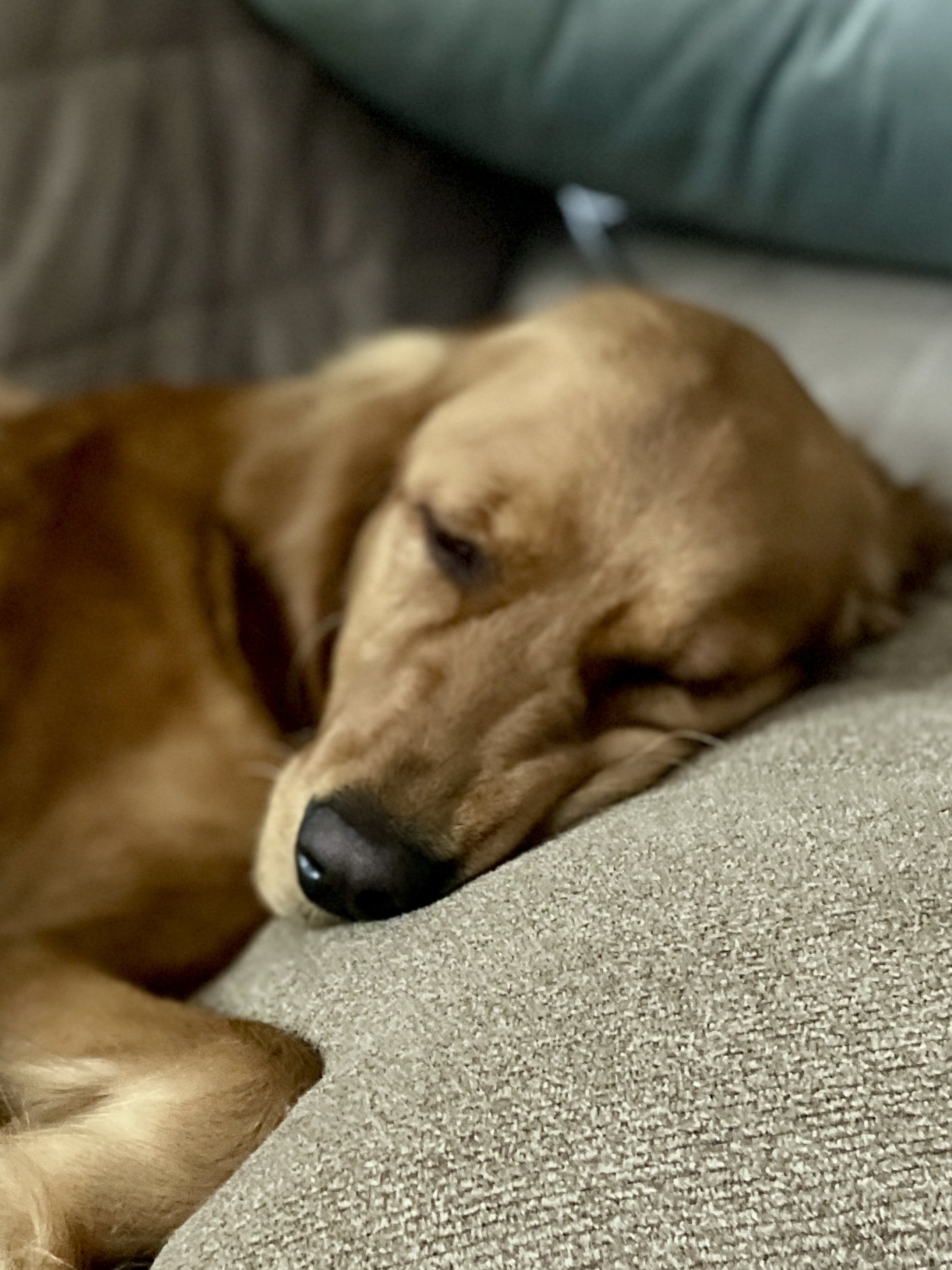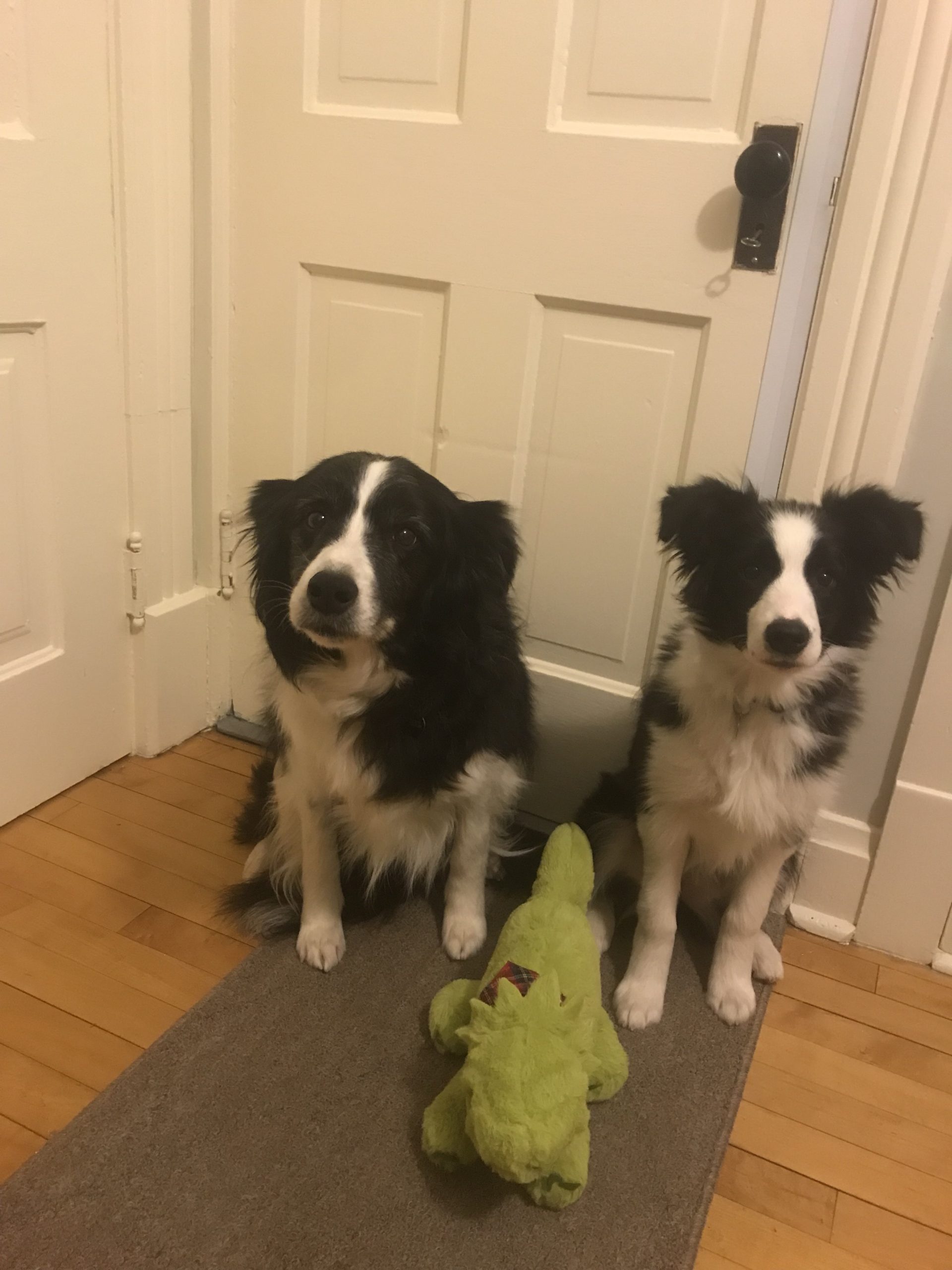 It was a long afternoon for Holly, having to look at Rainie’s new stuffed green dinosaur sitting on the mantle the whole time. This evening, Rainie did share it with the puppies for a few seconds before doing a grab and run. A wise 10 year old!