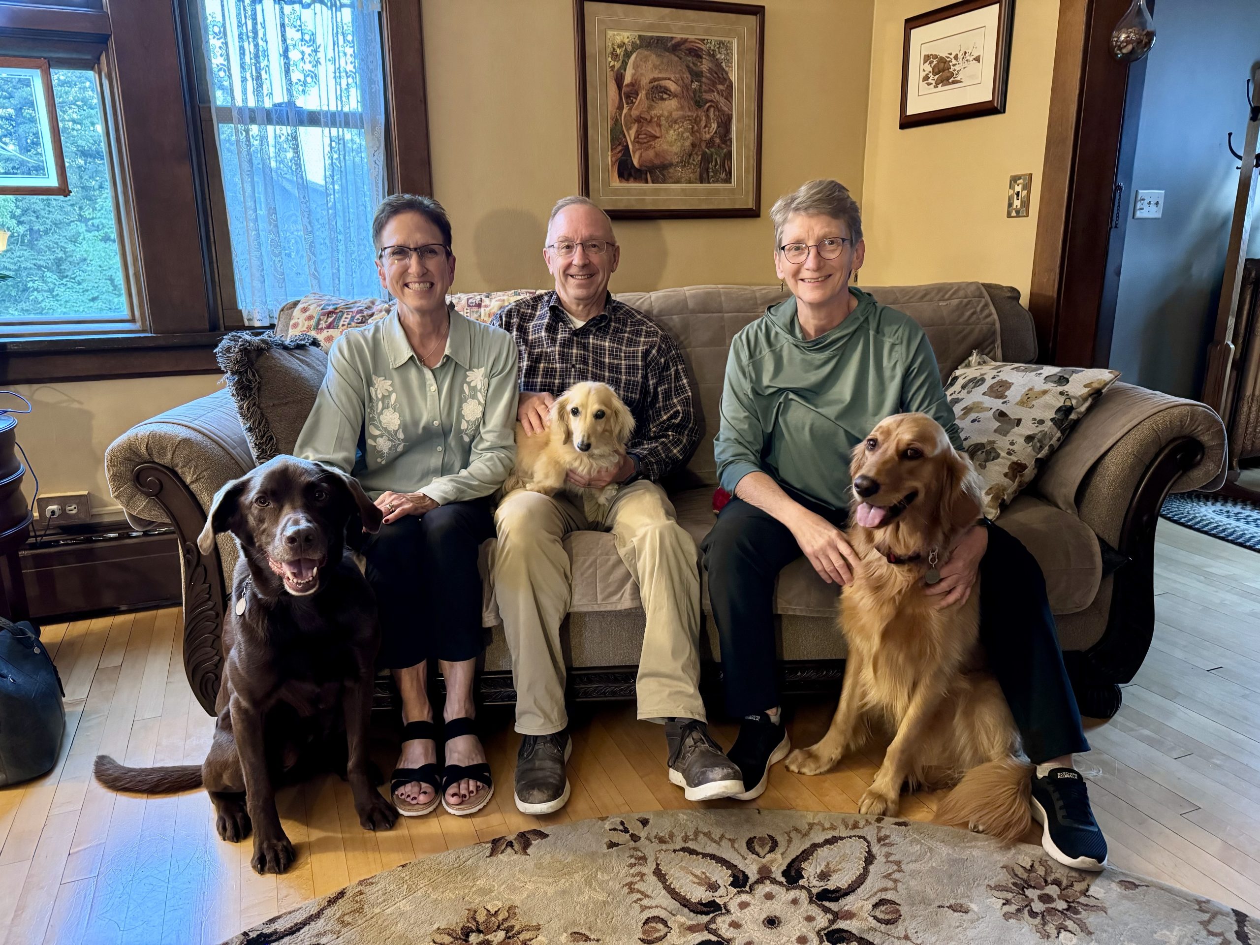 We had a special treat on September 15 when Lanny, Mary, and Lana & Kooper came to Duluth. We all ate at Va Bene then attended the Home Free concert at the Duluth Auditorium. Lana gifted all of us to the concern and the most special occasion was Mary’s 70th birthday being that very day! This group is never short of sharing a good time, stories and also time with the dogs! Holly goes ballistic whenever she greets Lanny, Mary and Lana so her energy was off the charts when all three of them were in the room – which had her leaping right into Lanny’s lap on a couple occasions. Thankfully Lanny’s coffee cup was capped tightly! Rattling through my head is ‘she’s almost 3’.