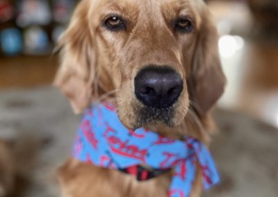 Lana stopped by today. She had a new scarf for Holly – one sporting the Minnesota Twins! It wasn’t game time when I put it on her, that may be why she had such a sour look on her face.