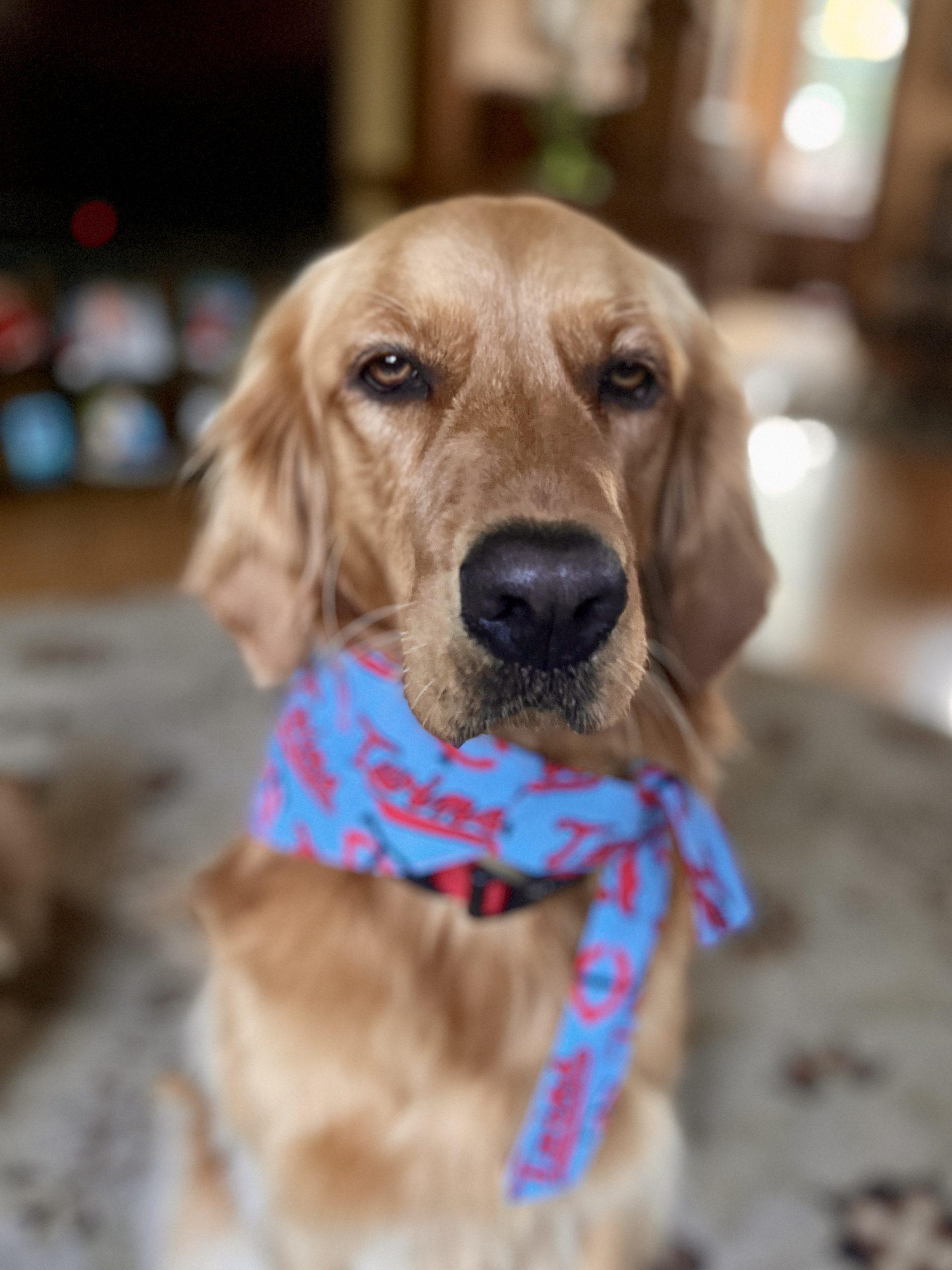 Lana stopped by today. She had a new scarf for Holly – one sporting the Minnesota Twins! It wasn’t game time when I put it on her, that may be why she had such a sour look on her face.
