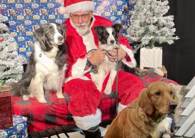 Holly & Keltie met Santa Claus today, while Rainie said hello and casually sat by his side while he tried to manage the excitement of the two puppies.  All of the dogs did awesome considering the factors involved – dog owners, dogs, bright lights, and little kids.  Santa was at the Caddy Shack Golf Center & Pub Bar in West Duluth – a first time for me as well.   I had Holly on a tight lead next to my chair and when another dog would walk by, she would show interest with a bit of a tail wag but when one of the children would walk by she would wag her tail excessively and pull to reach them.  Her love of children is so evident and consistent.
