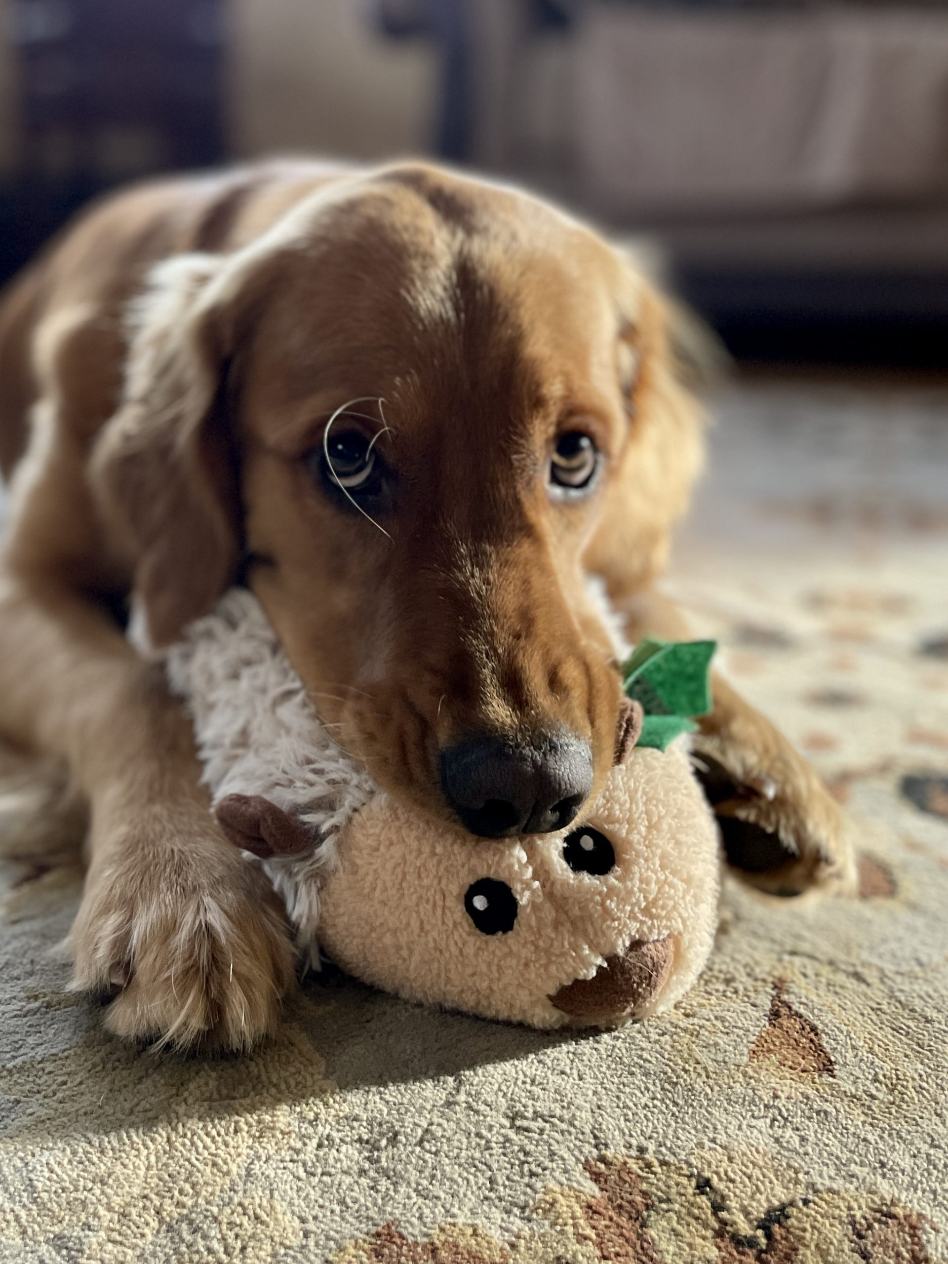 Each of the dogs received a stuffed squeaky animal, Holly’s was a mouse now named Mouse.  So far Mouse has only lost one foot.