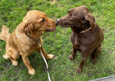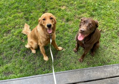 We were up nice and early so everyone could eat breakfast and have some play time before I had to head to work. The pups kenneled up in separate kennels in the basement prior to my departure. Both of them listened so well and deservingly received treats. Steve Clasen was kind enough to stop by on Friday and let them out during the day. I know both pups enjoyed his visit. Holly and Gracie’s mom returned home before I was done with work. From what I heard, Kooper was very excited to see his Auntie Robin. I’m sure Holly was happy to see her mom but she was probably more excited to play with Kooper and chase her ball!