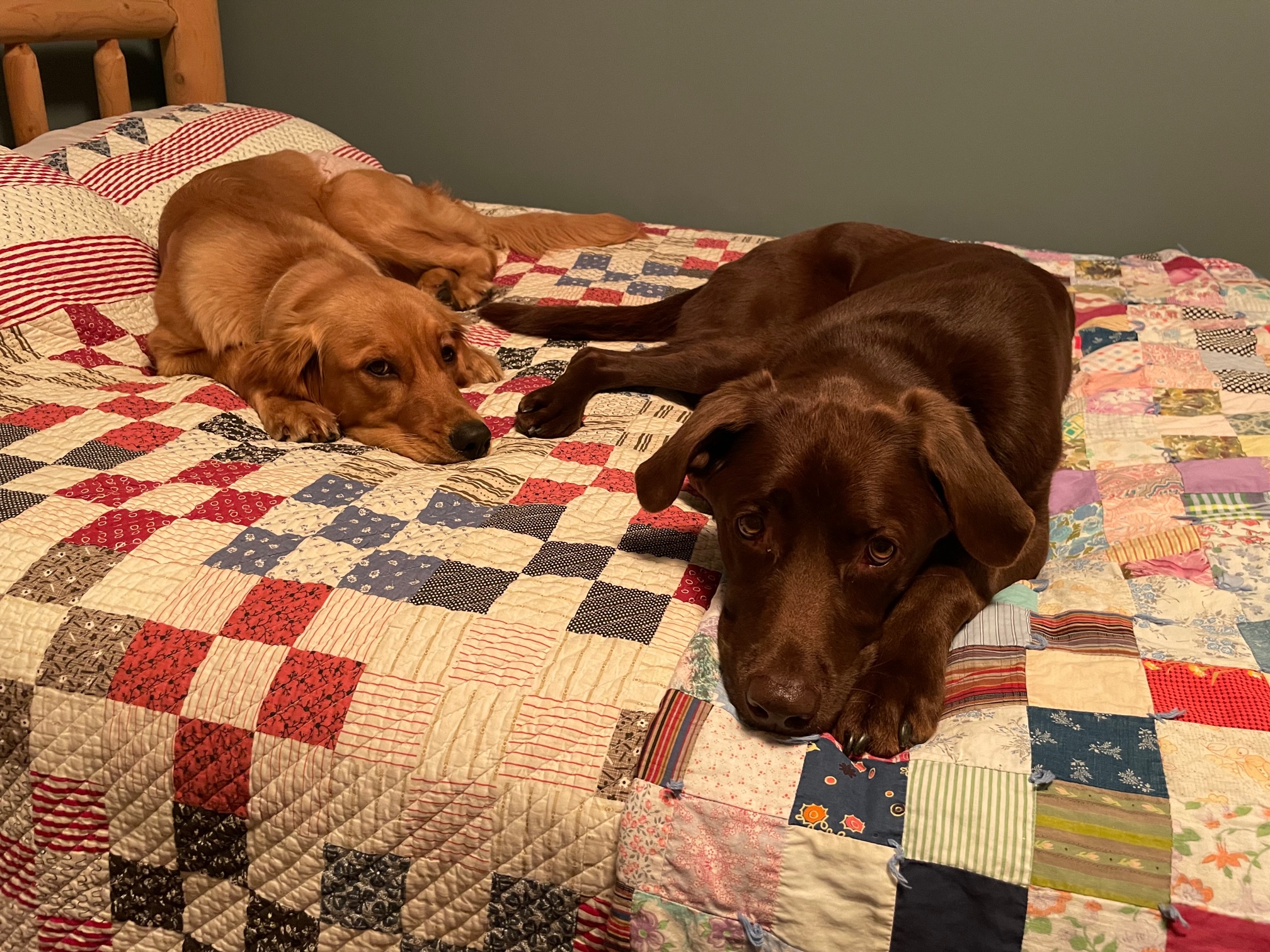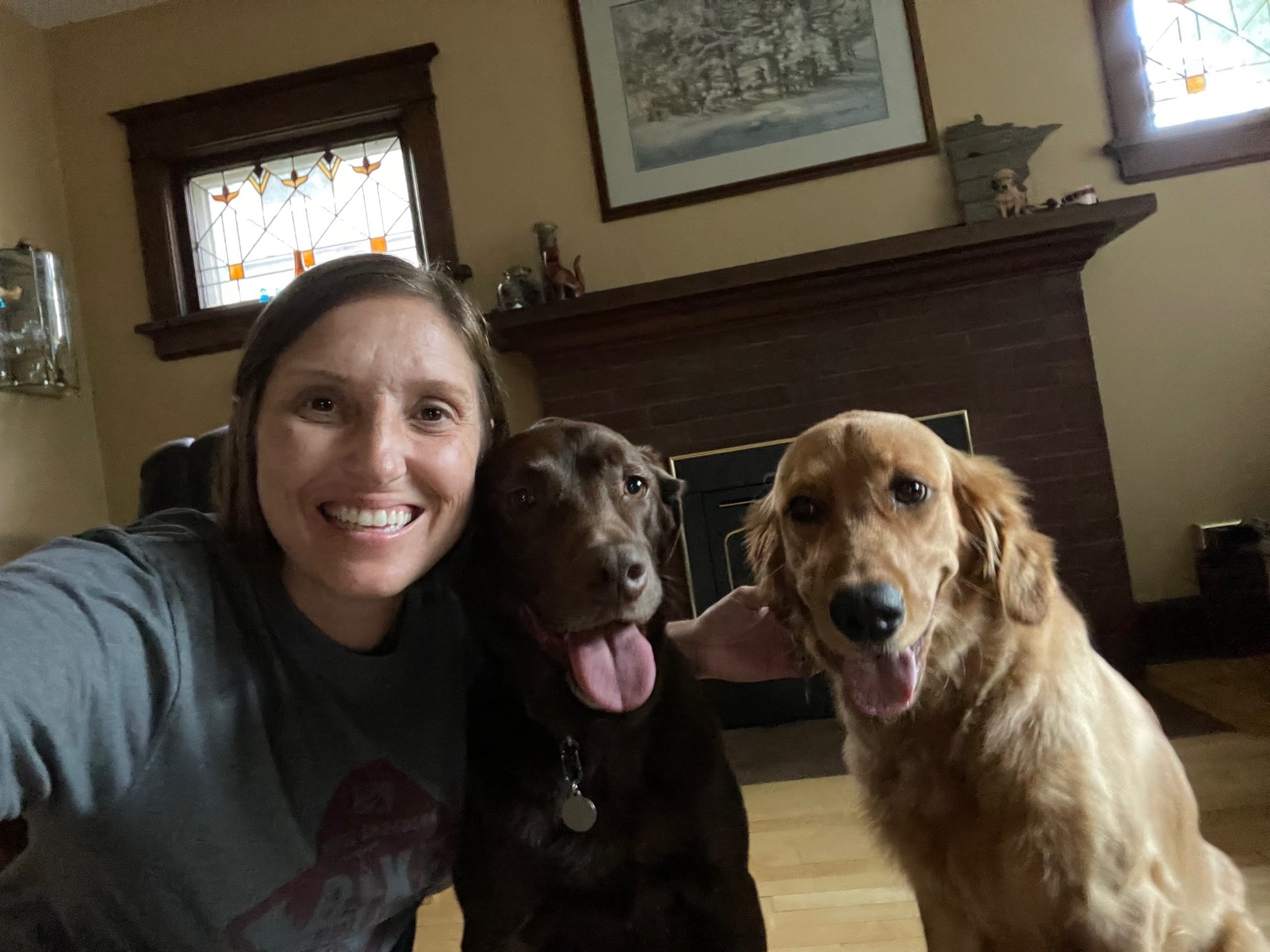 Eventually it was time for bed…our “Slumber Pawty”! I was told that Holly typically lays on the floor or on her bed. So we go upstairs to get ready for bed and I walk into the room to find two dogs on my bed! They were both so happy and proud of themselves. I just embraced it and snuggled right in. Holly did move to the floor but decided every hour or so that she would come check on me! I’m not sure where Gracie slept but she was smart and probably found a spot larger than I ended up with. There was a decent storm that night but all three fur babies did very well.