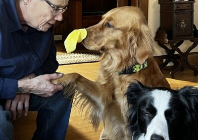 We were gifted with the best tutor in town! DeeAnn (and Keltie) agreed to help Holly with her jumps at the dog club. DeeAnn started with the jump height as a board on the floor. Keltie goes, Holly goes. We detected some reservation from Holly but running side by side with Keltie erased all her doubts. She could jump over the moon if Keltie was next to her. The dogs jumped over and over, back and forth with the height getting a tad higher but not surpassing 12 inches. Holly left happy and confident. Her next attempt is at next Monday’s class. Continue on Holly!