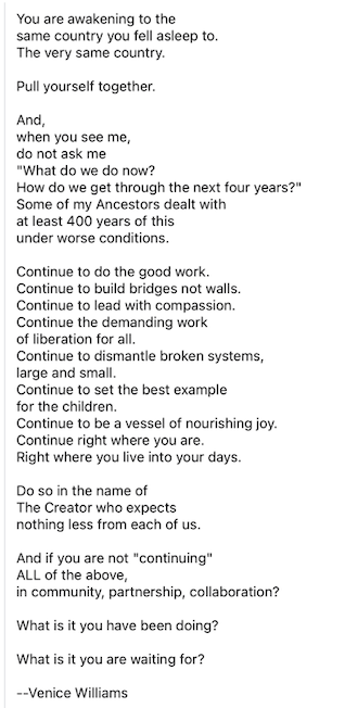 Election night did not go the way I felt it should. The differences between the two choices were as wide as the Grand Canyon. Clearly, to me and many others, the path to take was the higher road. Not enough people felt the same way and we are now on a very different road, hopefully still forward. The disappointment is deep and not to be overly dramatic, but also devastating.